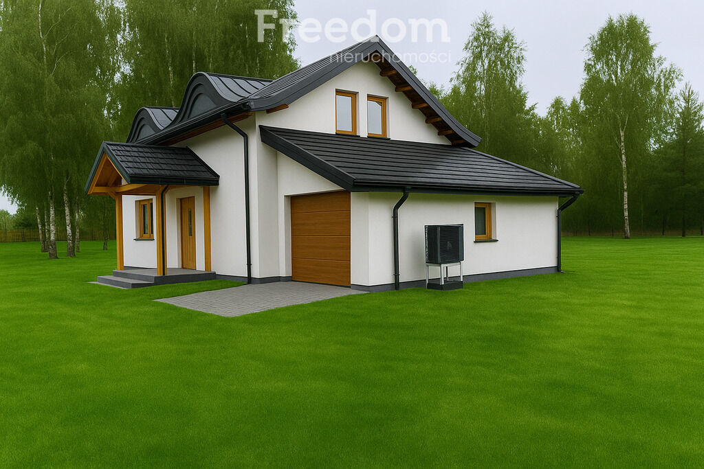 Wolnostojący dom z garażem (21 m²) został zbudowany z wysokiej